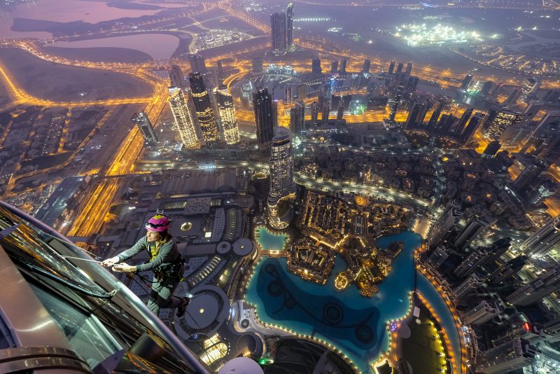 Burj Khalifa est un gratte-ciel situé à Dubaï aux Émirats arabes unis, devenu en mai 2008 la plus haute structure humaine jamais construite. Sa hauteur finale, atteinte en janvier 2009, est de 828 mètres. Elle forme le cœur d’un nouveau quartier : Downtown Dubai.